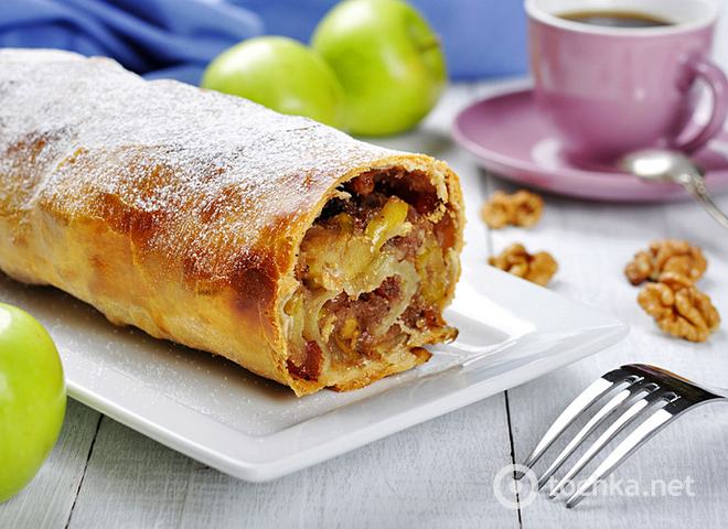 Готовый штудень посыпь сахарной пудрой.