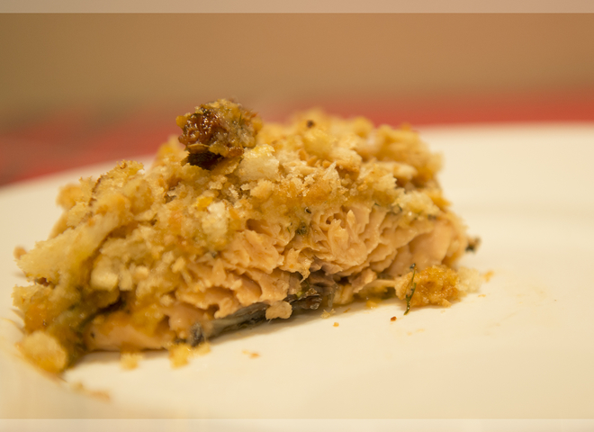 2. Перед запеканием на хлебные крошки можно выложить пару сбрызнутых маслом веточек розмарина или тимьяна – аромат будет умопомрачительный.